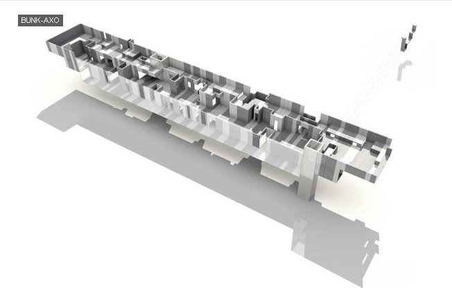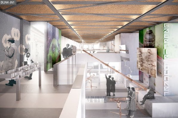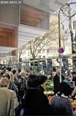 La Galerie Bunker est un espace d’exposition suspendu au métro Barbès, elle fonctionne selon un système de coopérative, constituée de différents modules d’exposition, de lieux de rencontres, d’échange, d’espaces marchands qui se composent en s’agrégeant, et ce en fonction du nombre d’espaces occupés selon les besoins de chacun. D’ailleurs dans mes travaux, il y a toujours, de manière sous-jacente, cette idée de ne pas avoir une stylistique architecturale définie. C’est finalement l’action sociale qui détermine l’architecture. L’idée est plutôt de mettre en place une stratégie architecturale plutôt qu’un geste virtuose.