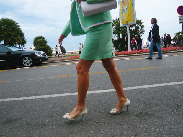 À Cannes, les talons sont plus qu’un signe extérieur d’élégance ; ils relèvent d’une prise de risque quotidienne et d’une défiance juvénile à l’égard des autres femmes. Ils sont alors un indicateur de position d’appartenance à la ville et s’affichent comme les accréditations des jeunes cannoises à circuler en parallèle des spectateurs, comme héroïnes cinématographiques modernes, risquant la chute à chaque instant, sacrifiant leur confort sur l’autel de l’élégance et marquant éternellement du claquement de leur talons le bitume de la Croisette.