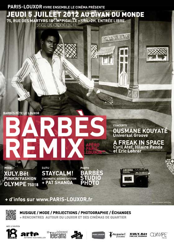 Barbès embrasse le monde et fête le Louxor ! PARIS-LOUXOR organise une rencontre conviviale et festive avec les Parisien(ne)s, les habitant(e)s du quartier du Louxor (9, 10 et 18e), les cinéphiles, les amateurs/trices de mode et de musique, destinée à partager avec les habitant(e)s une programmation artistique révélant la diversité et le dynamisme présent autour du Louxor. Salle de cinéma construite en 1921 en cours de réhabilitation par la Ville de Paris. Imaginée comme un marché, la soirée BARBÈS REMIX se répartie sur deux niveaux (en salle, sur scène et à l’étage sur la mezzanine) où chacun pourra participer, découvrir, échanger, déguster… et danser.
