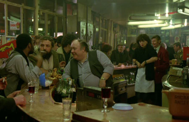 Nous étions les premiers à utiliser la première pellicule Fuji 400 Asa. Kodak n’avait pas encore sorti la sienne et Willy de chez Fuji voulait à tout prix que l’on essaye sa nouvelle pellicule. C’est alors devenu très clair, si vous voulez qu’on l’essaye donnez nous la pellicule pour faire le film. Sur le tournage, tu sais que tu ne peux pas éclairer le boulevard, d’ailleurs ça n’a pas de sens, si tu veux le faire, autant aller en studio. Il nous a alors fallu réfléchir à la manière de procéder avec toutes ces contraintes. Pour les scènes de nuit, il nous fallait tourner près de sources lumineuses, il y a même une scène de jour que l’on mis de nuit, avec une référence lumineuse très forte, toujours dans un décor naturel. Le seul endroit où l’on maîtrise réellement  la lumière c’est à La Vielleuse (bar de Belleville ndlr). plus précisément dans l’arrière bar, parce que le bar on ne l’a pas fermé. Je n’ai jamais fait fermé un bar, 60% des films environ que j’ai tourné se passent dans les bistrots, j’ai même un logiciel qui les répertorie ! C’est toujours une question complexe le tournage dans les lieux publics, le décor, le passage, les habitués. Le meilleur assistant du monde ne te trouve pas les bonnes personnes pour les scènes de bar, ce qu’il faut faire c’est avoir, en plus de la faune, deux, trois copains aux places stratégiques pour les raccords, dans le découpage et la mise en scène pour être sûr que trois heures après tu aies les mêmes. sinon c’est intenable.